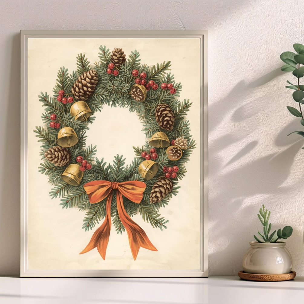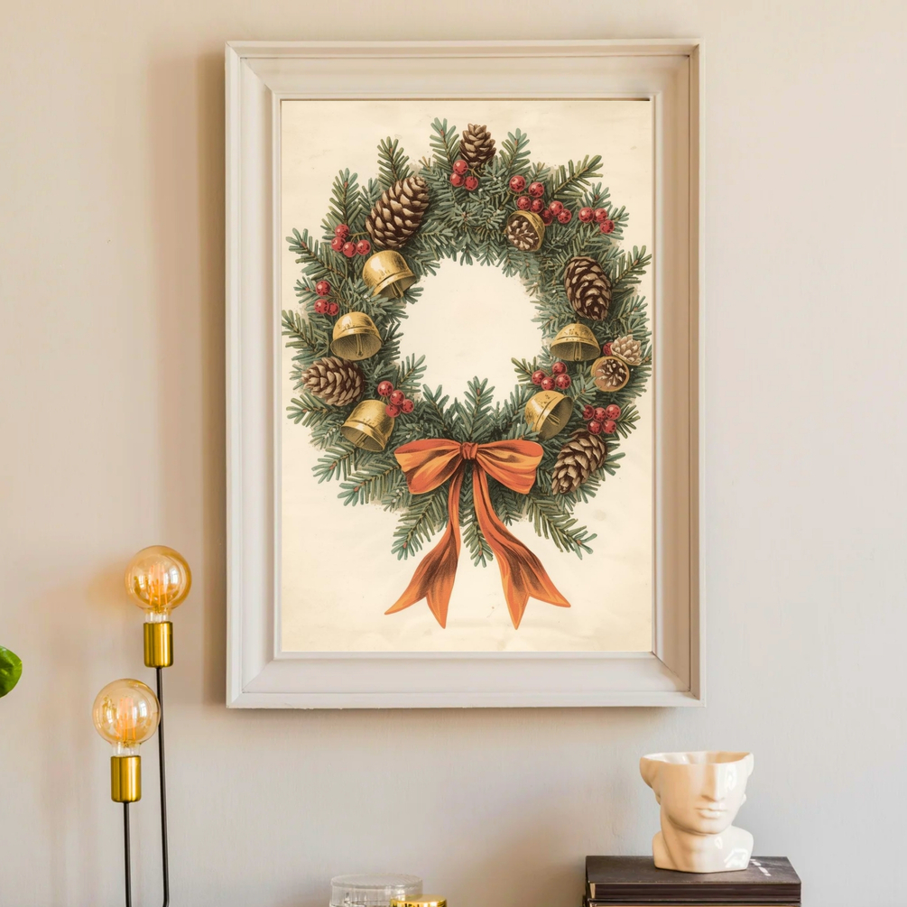 Welcome the spirit of Christmas into your home with this Vintage Christmas Wreath wall art — a timeless symbol of love, unity, and holiday warmth.